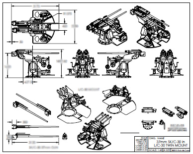 This is a set of 1/48 scale drawings for the twin 37mm found on many types of Kriegsmarine ship.